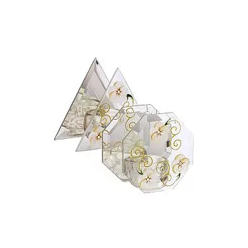Madiggan手工彩繪玻璃玫瑰蠟燭八角映像反映台-金黃色